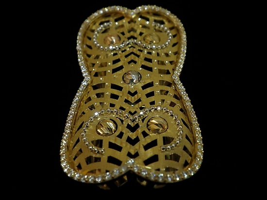 Златен пръстен с орнаменти и бели камъни,олекотен