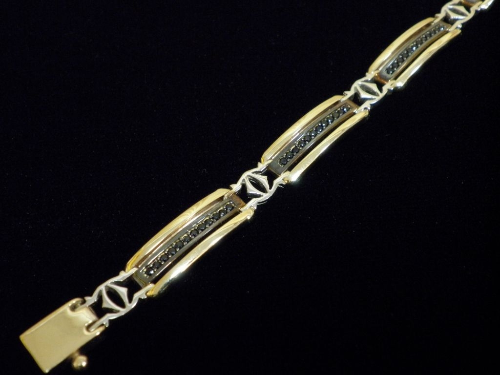 Златна синджирна гривна с елементи от бяло и жълто злато,олекотена