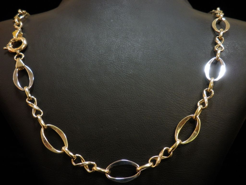 Златен синджир с елементи от бяло и жълто злато,олекотен