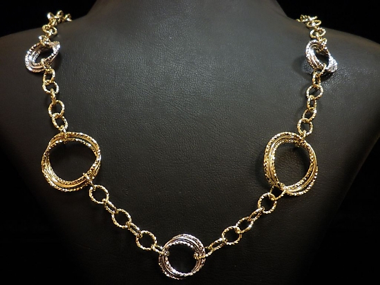 Златен синджир с гравирани елементи от бяло и жълто злато,олекотен