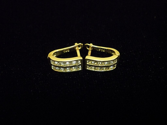 Златни детски обеци с бели камъни,английско закопчаване