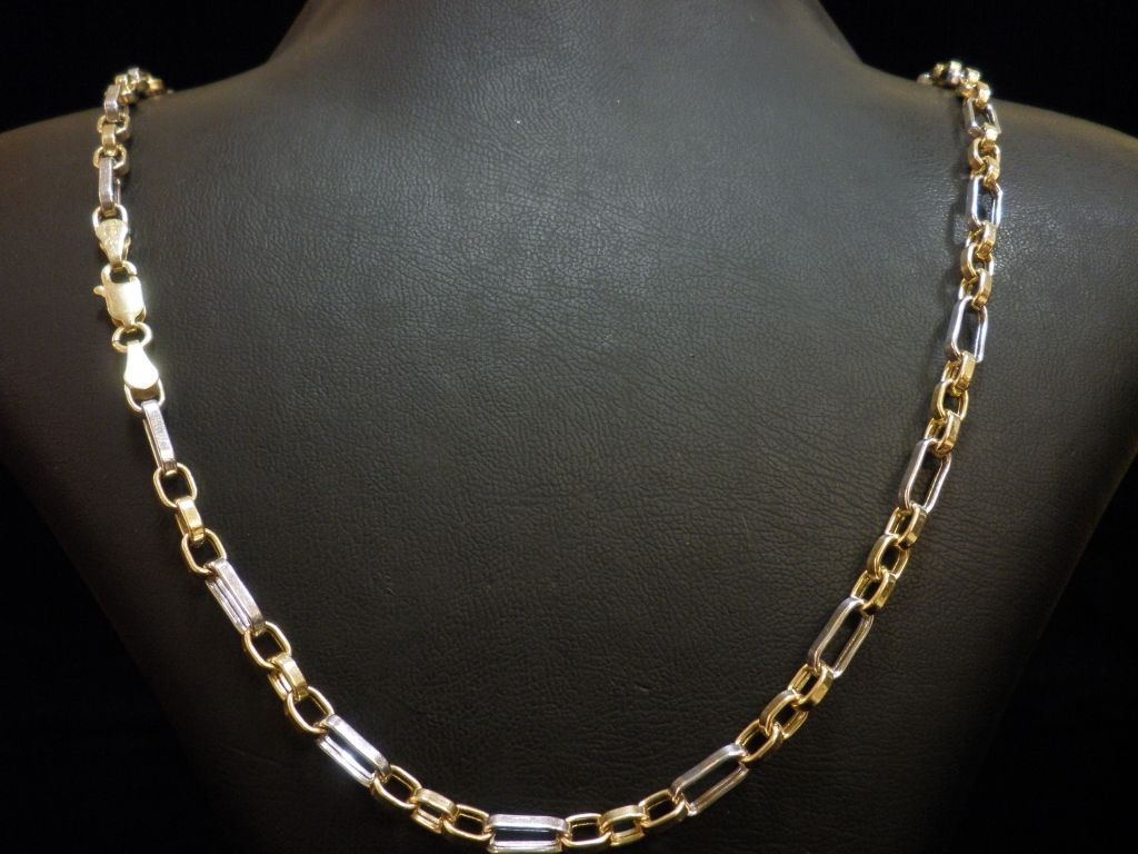 Златен синджир с елементи от бяло и жълто злато,олекотен
