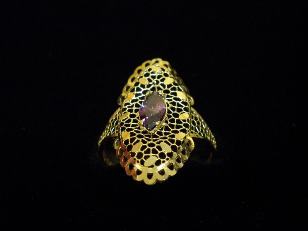 Златен пръстен с лилав камък