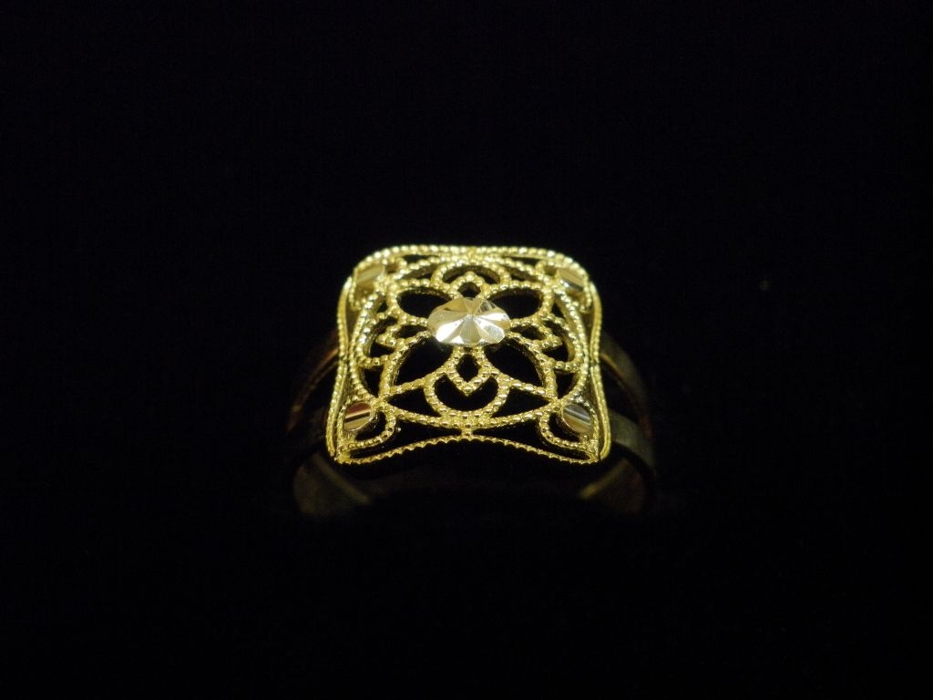 Златен пръстен с орнаменти от жълто злато,олекотен