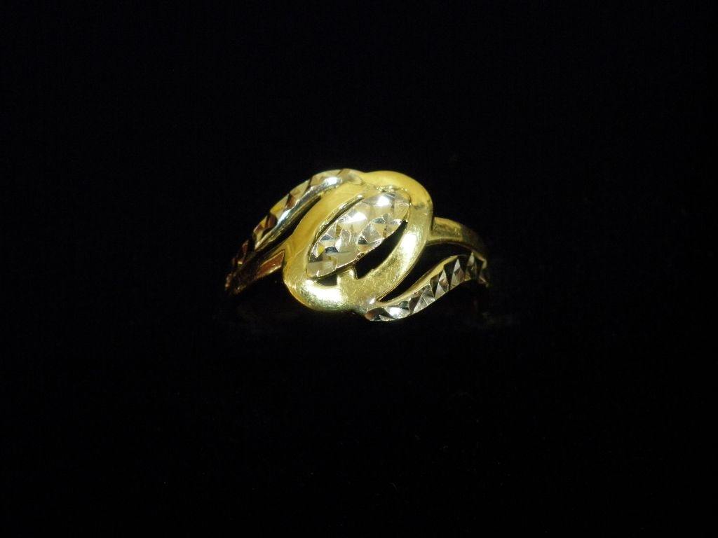 Златен пръстен с гравирано бяло и жълто злато,олекотен