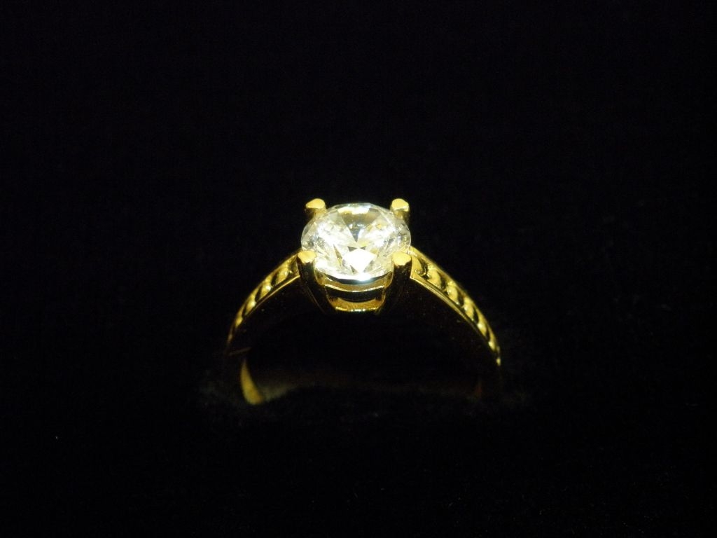 Златен пръстен годежен с бял камък