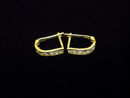 Златни детски обеци с бели камъни,английско закопчаване