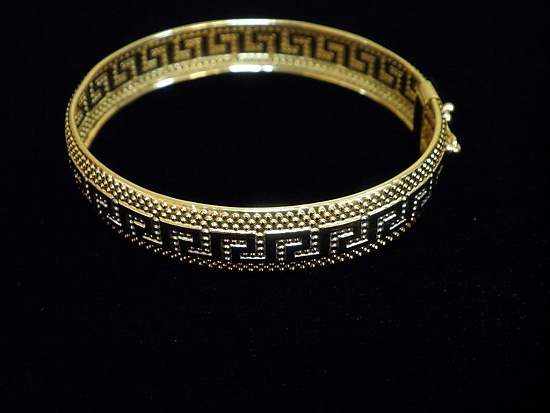Златна твърда гривна с елементи Версаче от бяло и жълто злато