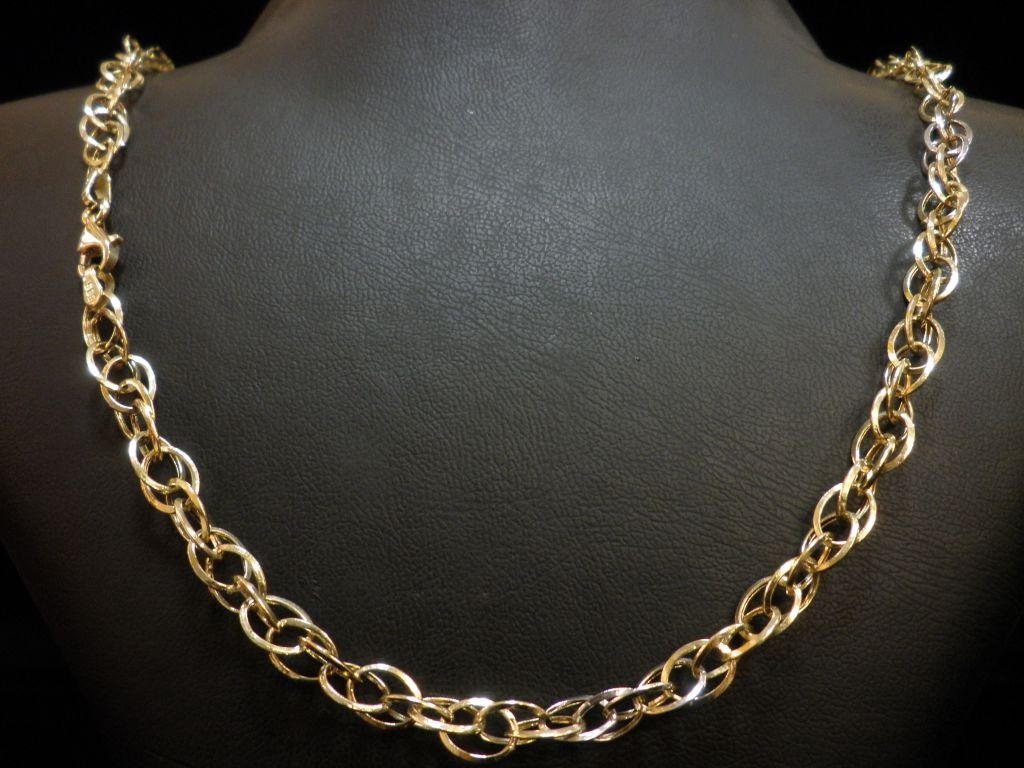Златен синджир с елементи от бяло и жълто злато,олекотен