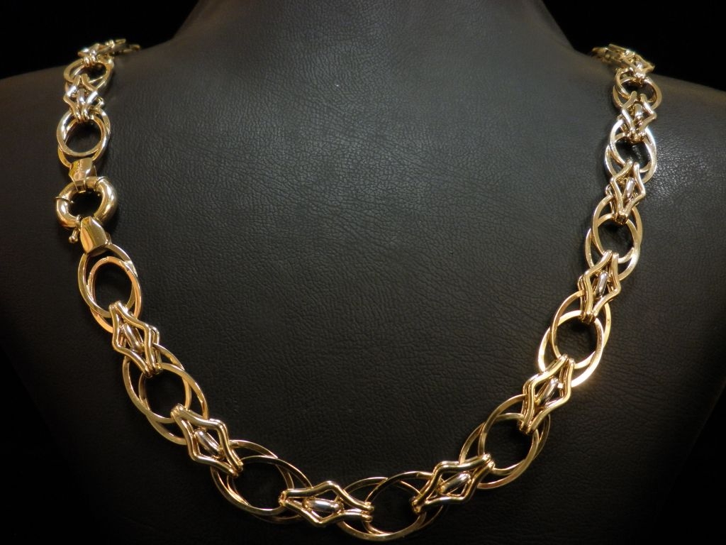 Златен синджир с елементи от бяло и жълто злато,олекотен