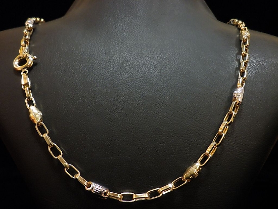 Златен синджир с елементи от бяло и жълто злато,олекотен
