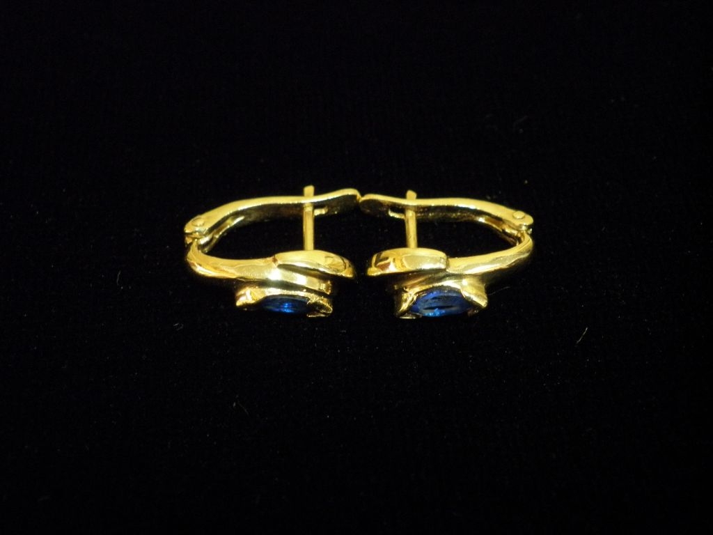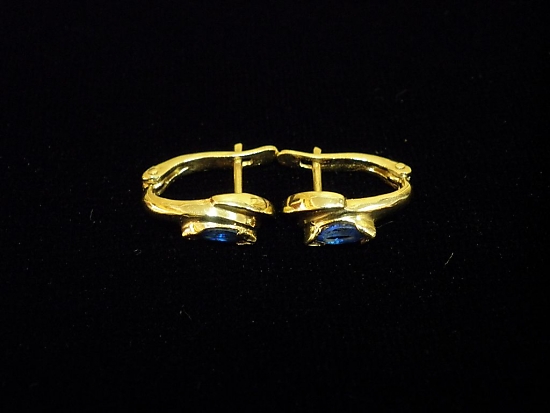 Златни обеци със сини камъни,английско закопчаване