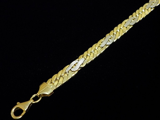 Златна синджирна гривна с елементи от бяло и жълто злато,олекотена