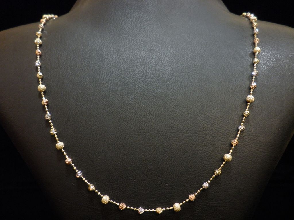 Златен синджир,колие с гравирани топчета от бяло,жълто и червено злато