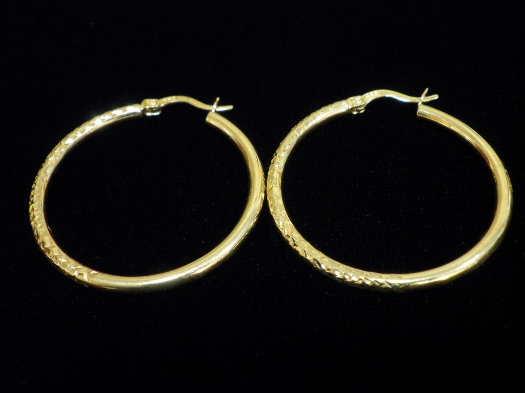 Златни обеци халки гравирани,олекотени