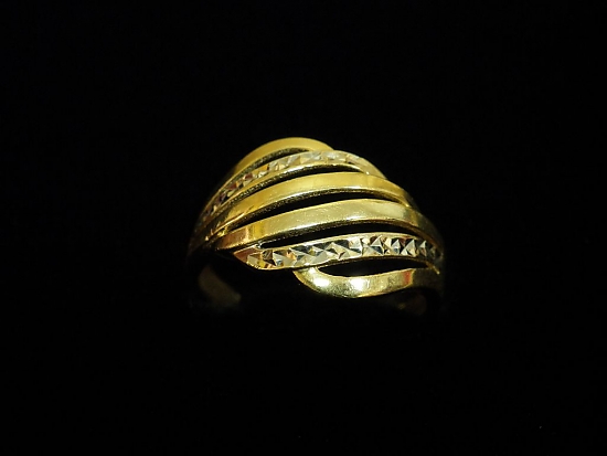Златен пръстен с гравирано бяло и жълто злато,олекотен