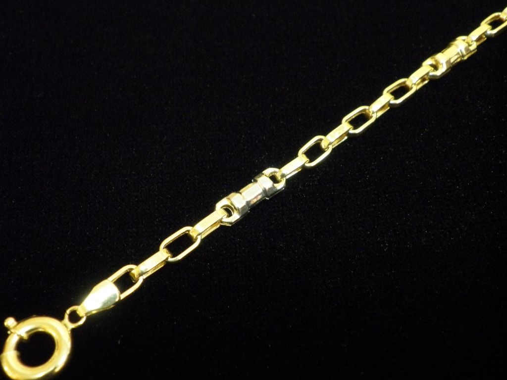 Златна синджирна гривна с елементи от бяло и жълто злато,олекотена
