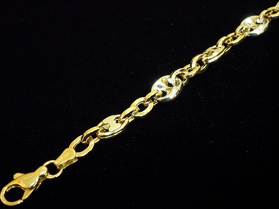 Златна синджирна гривна с елементи от бяло и жълто злато,олекотена