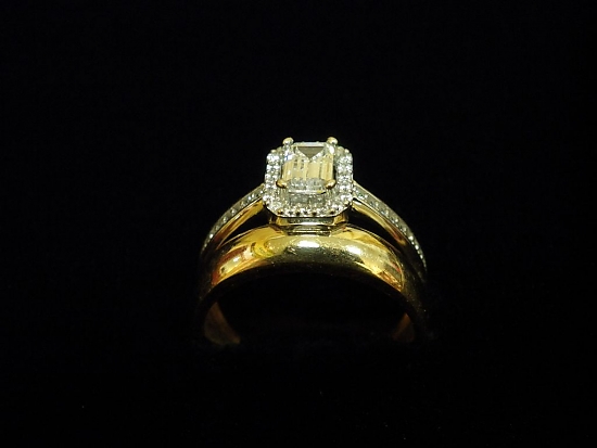 Златен пръстен годежен с бели камъни