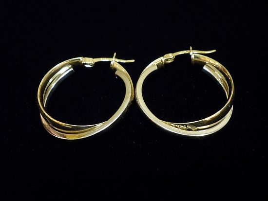 Златни обеци с бяло и жълто злато,олекотени