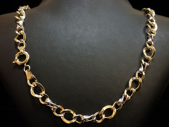 Златен синджир с елементи от бяло и жълто злато,олекотен
