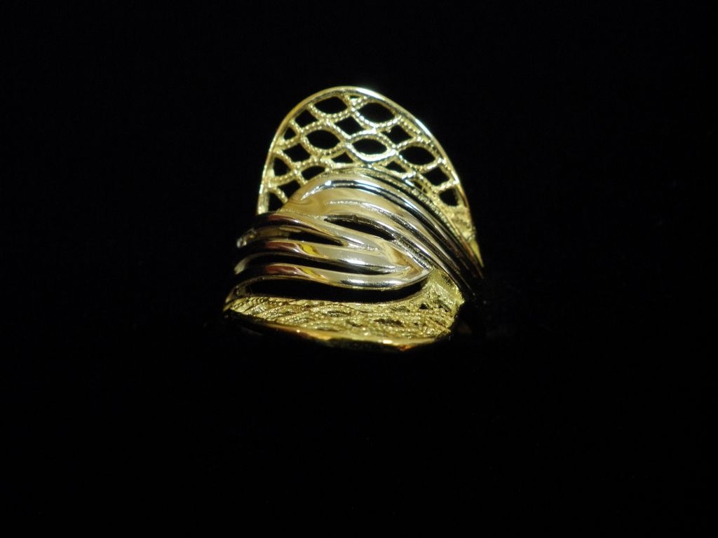 Златен пръстен с орнаменти от бяло и жълто злато,олекотен