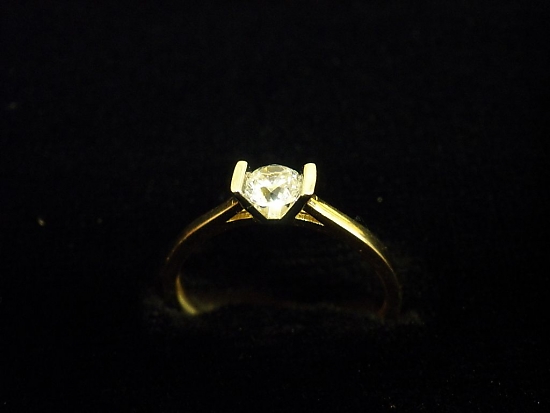 Златен пръстен годежен с бял камък