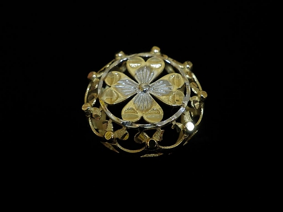 Златен пръстен с орнаменти от бяло и жълто злато,олекотен