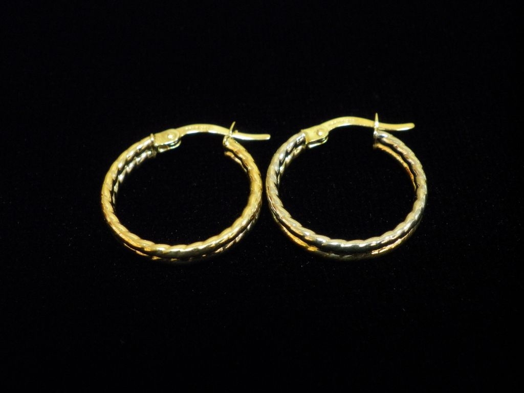 Златни обеци халки гравирани от бяло и жълто злато,олекотени