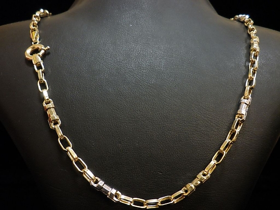 Златен синджир с елементи от бяло и жълто злато,олекотен