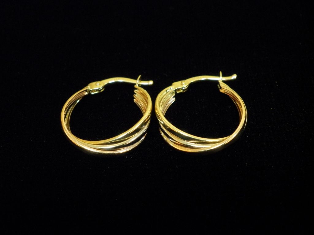 Златни обеци от бяло,жълто и червено злато,олекотени