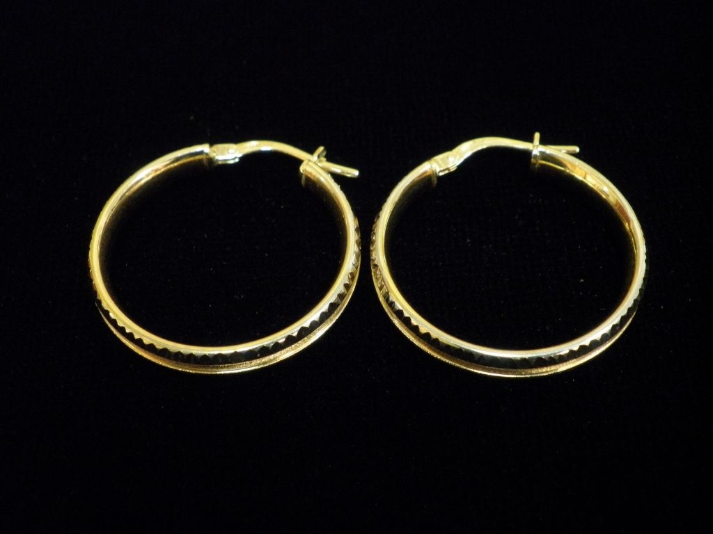 Златни обеци халки гравирани от бяло и жълто злато,олекотени