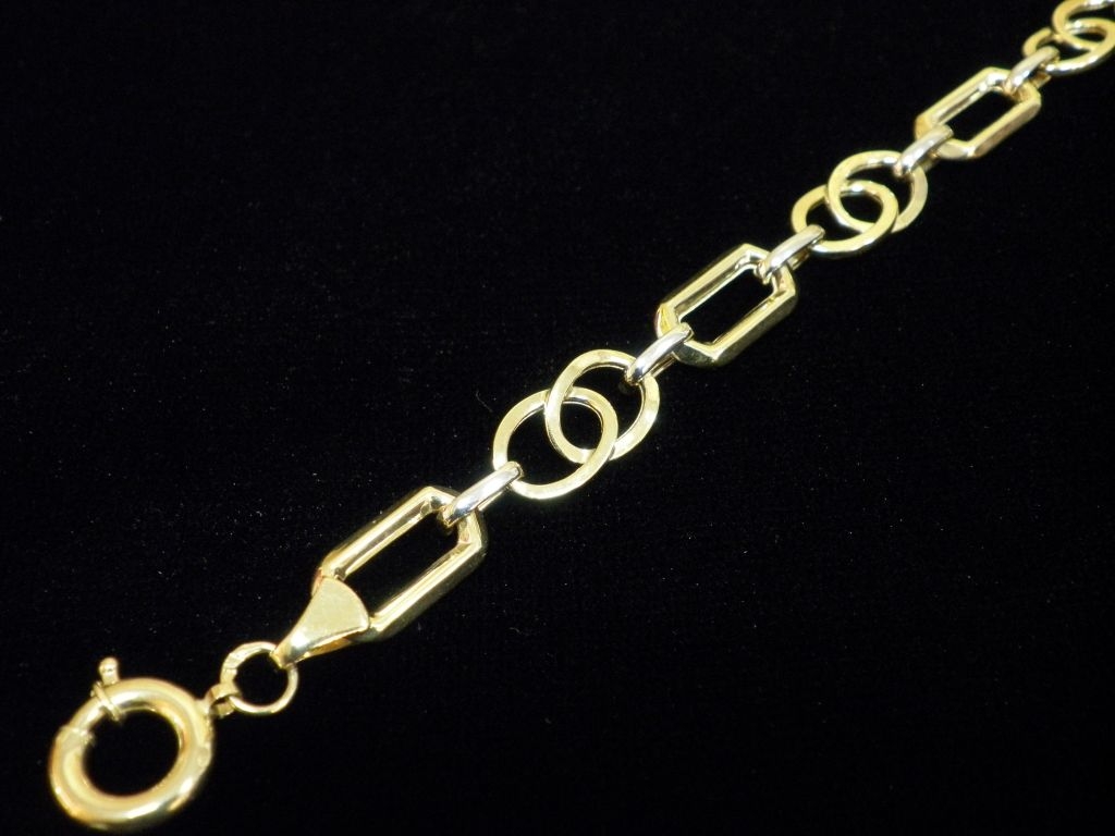Златна синджирна гривна с елементи от бяло и жълто злато,олекотена