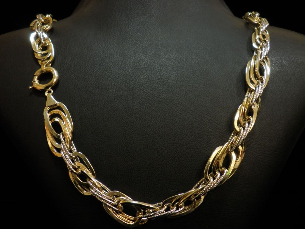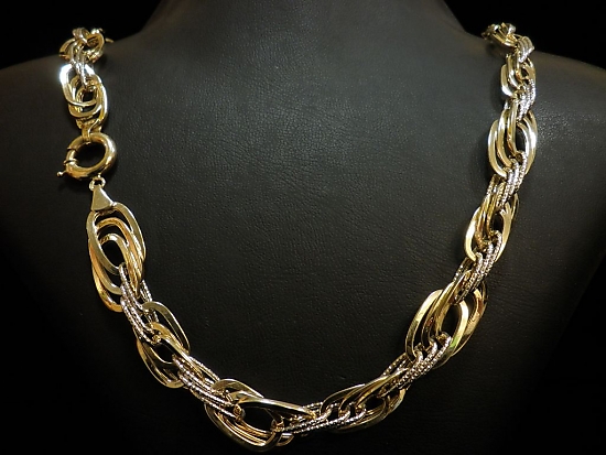 Златен синджир с гравирани елементи от бяло и жълто злато,олекотен