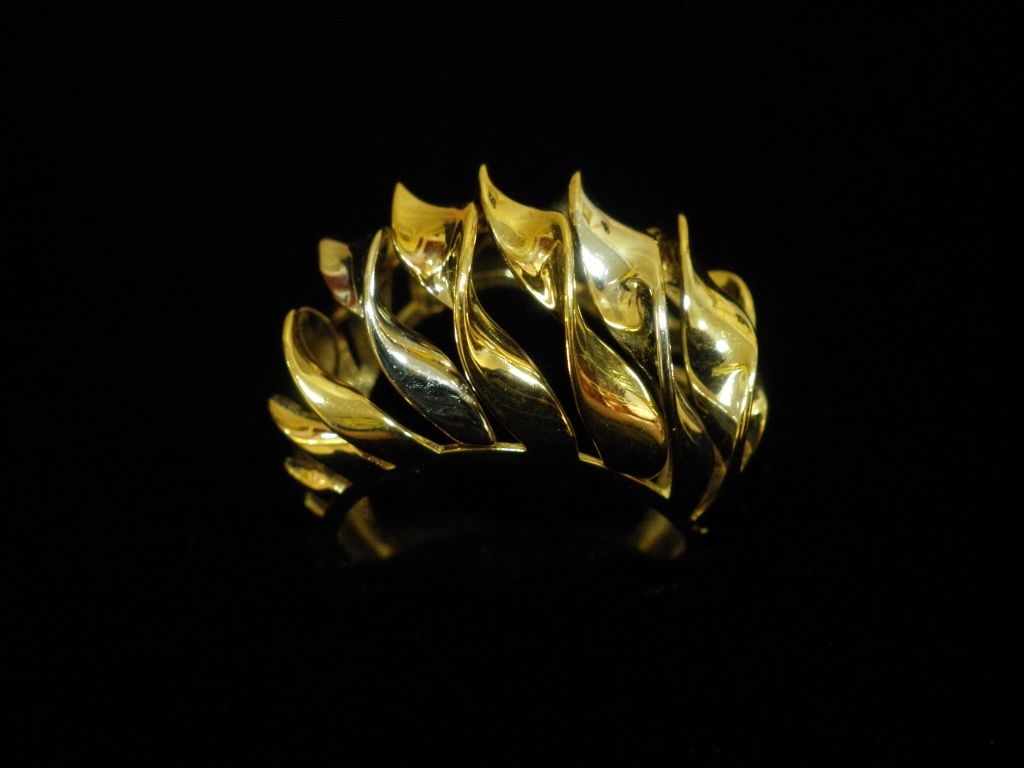 Златен пръстен с орнаменти от бяло и жълто злато,олекотен
