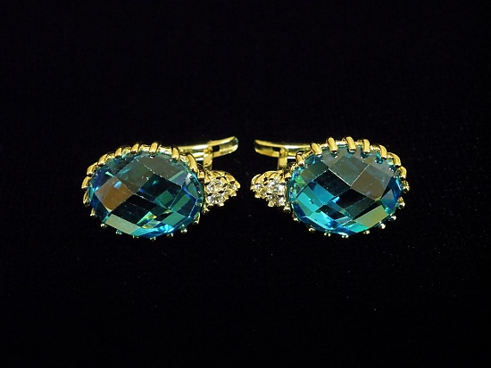 Златни обеци с цветни камъни,английско закопчаване