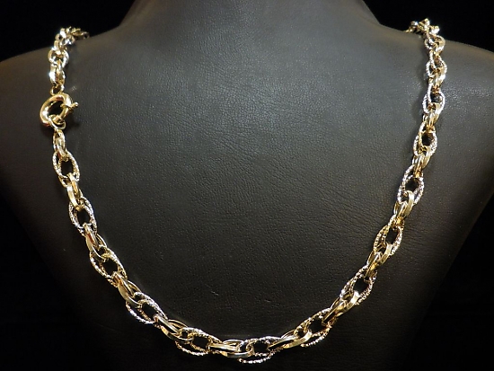 Златен синджир с гравирани елементи от бяло и жълто злато,олекотен