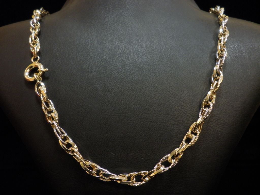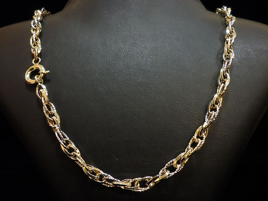 Златен синджир с гравирани елементи от бяло и жълто злато,олекотен
