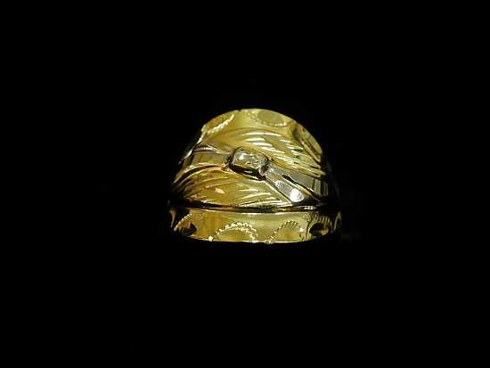 Златен пръстен с гравирано бяло и жълто злато,олекотен