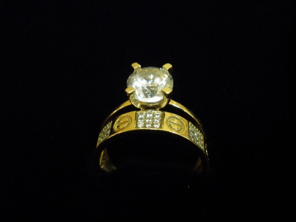 Златен пръстен годежен с бели камъни