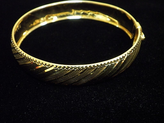 Златна твърда гривна с гравирано жълто злато