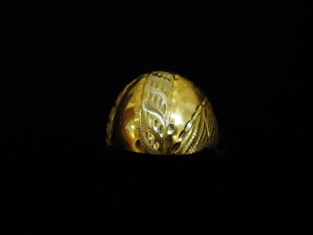 Златен пръстен с гравирано бяло и жълто злато,олекотен