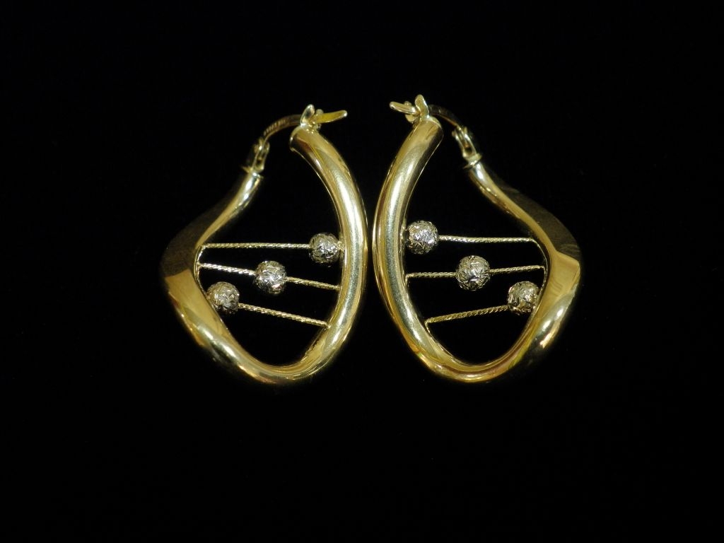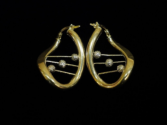 Златни обеци с бяло и жълто злато,олекотени
