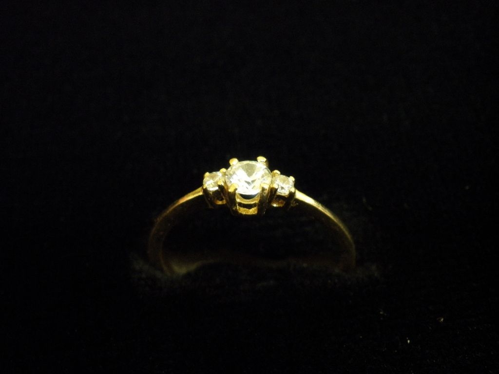 Златен пръстен годежен с бели камъни