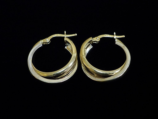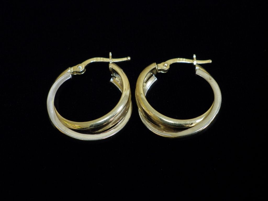 Златни обеци с бяло и жълто злато,олекотени