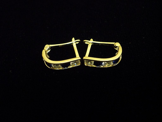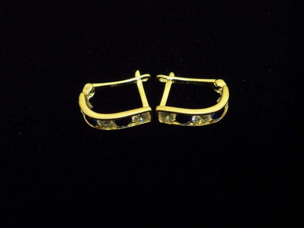 Златни детски обеци с бели и сини камъни,английско закопчаване