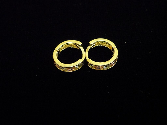 Златни детски обеци с бели и розови камъни