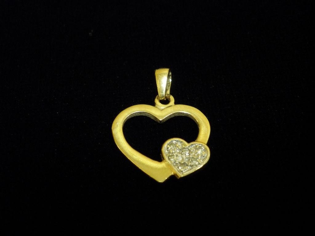 Златен медальон сърце с бели камъни