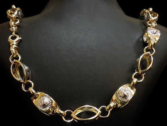 Златен синджир с елементи Версаче от бяло и жълто злато,олекотен