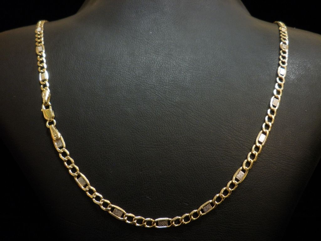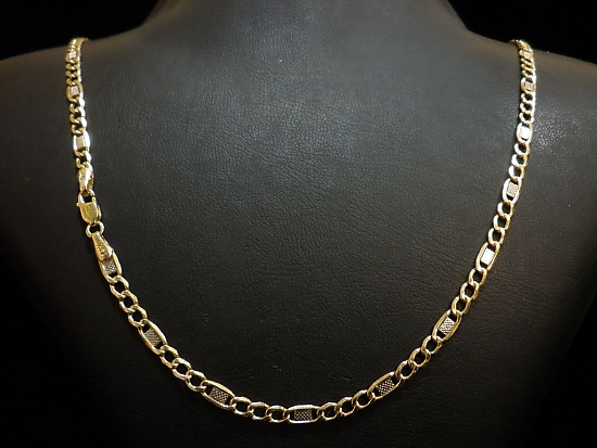 Златен синджир с гравирани елементи от бяло и жълто злато